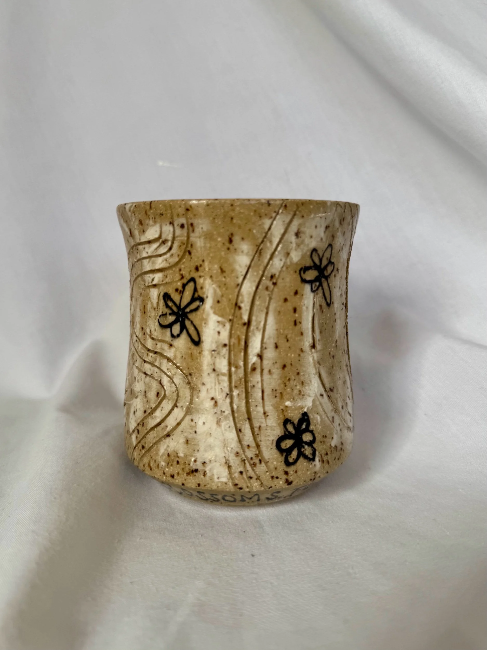 It was handcrafted using a tan speckled stoneware clay, and finished with a clear glaze to highlight the surface texture and design.